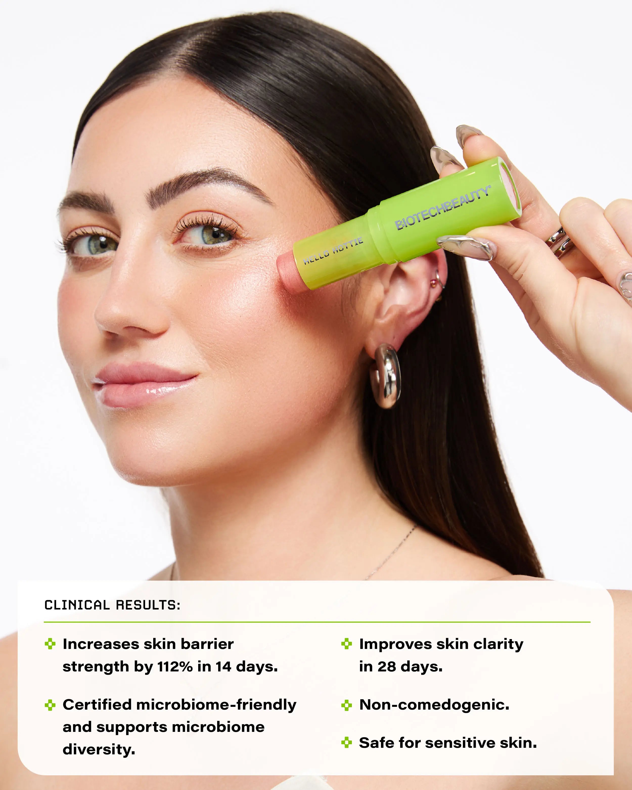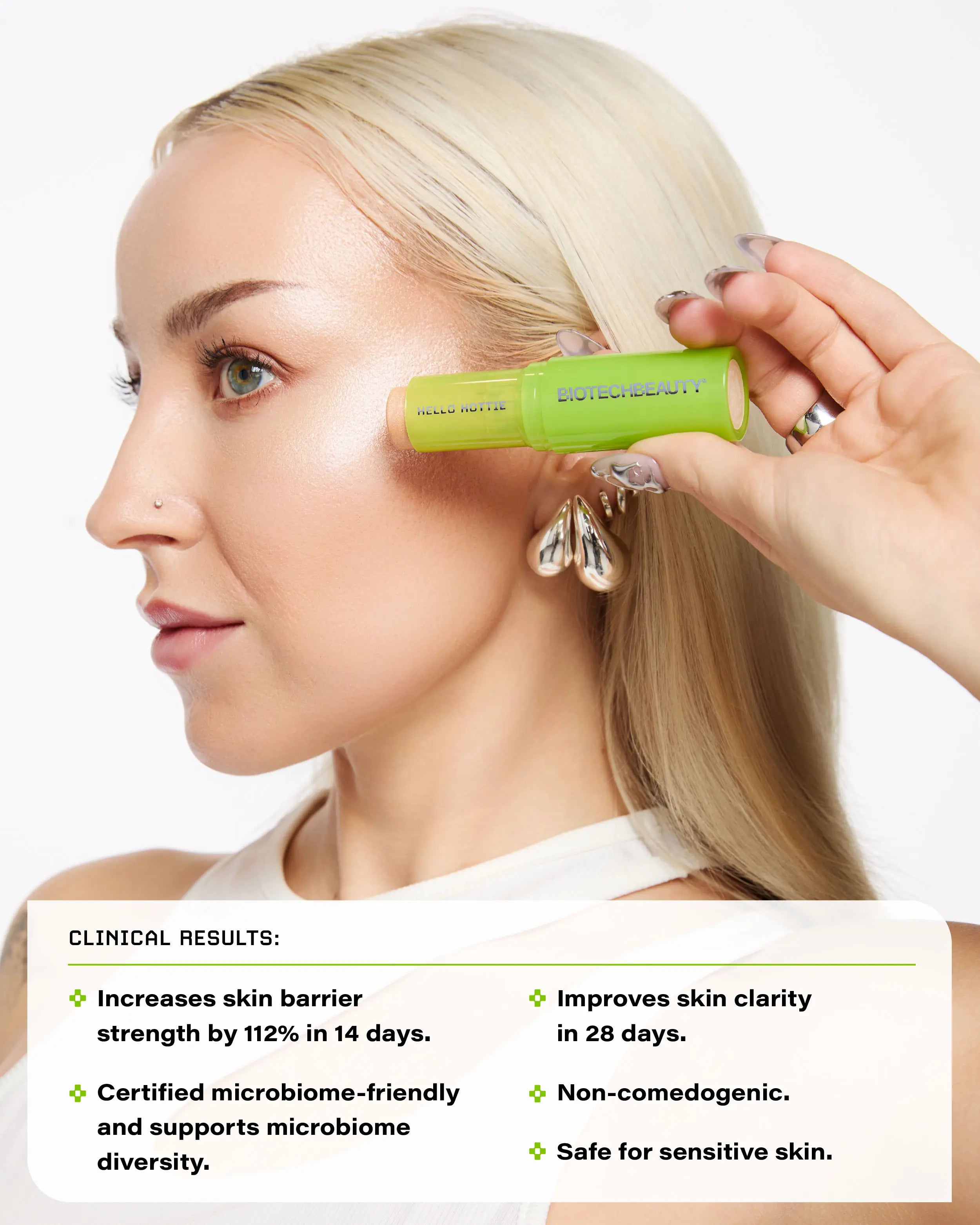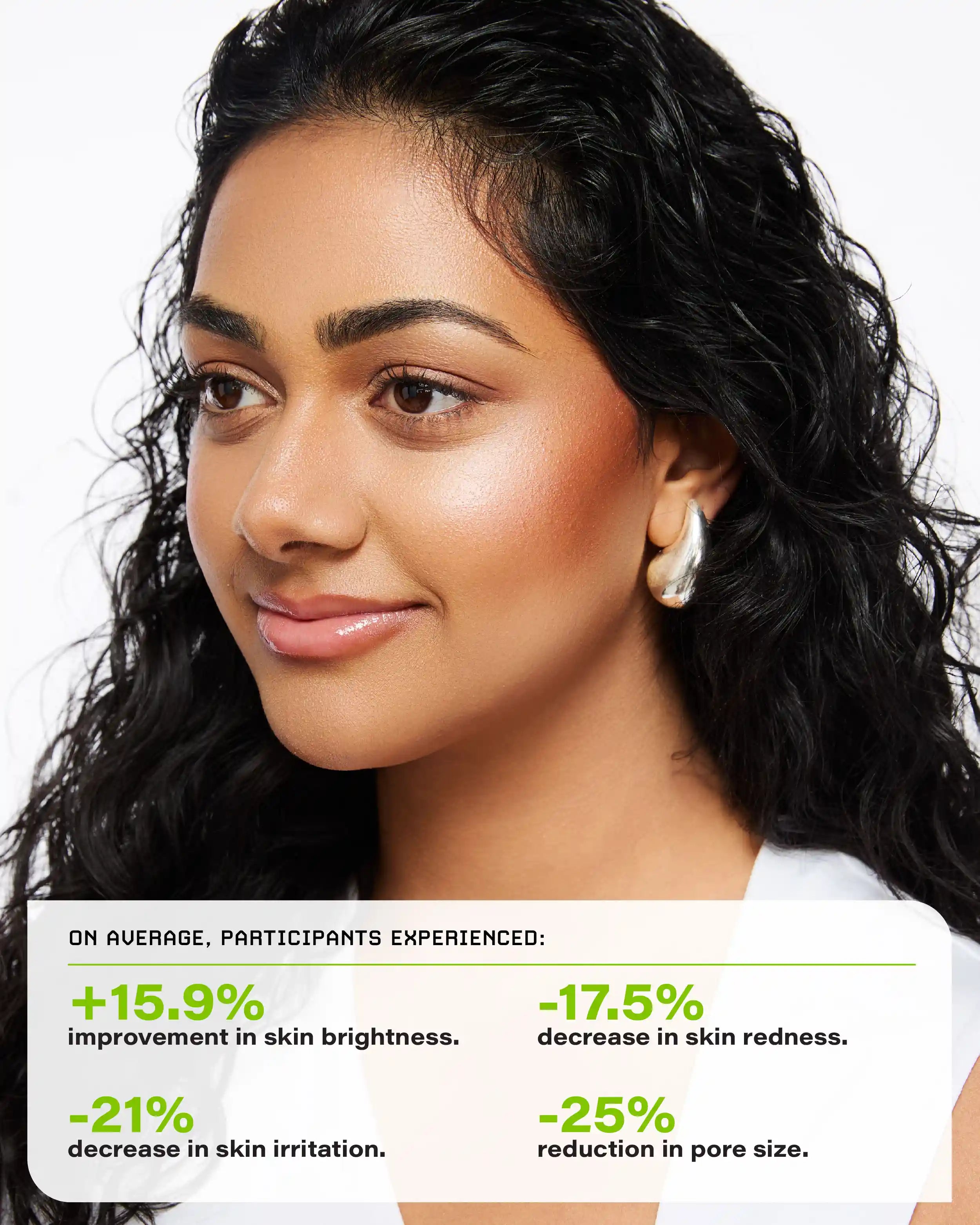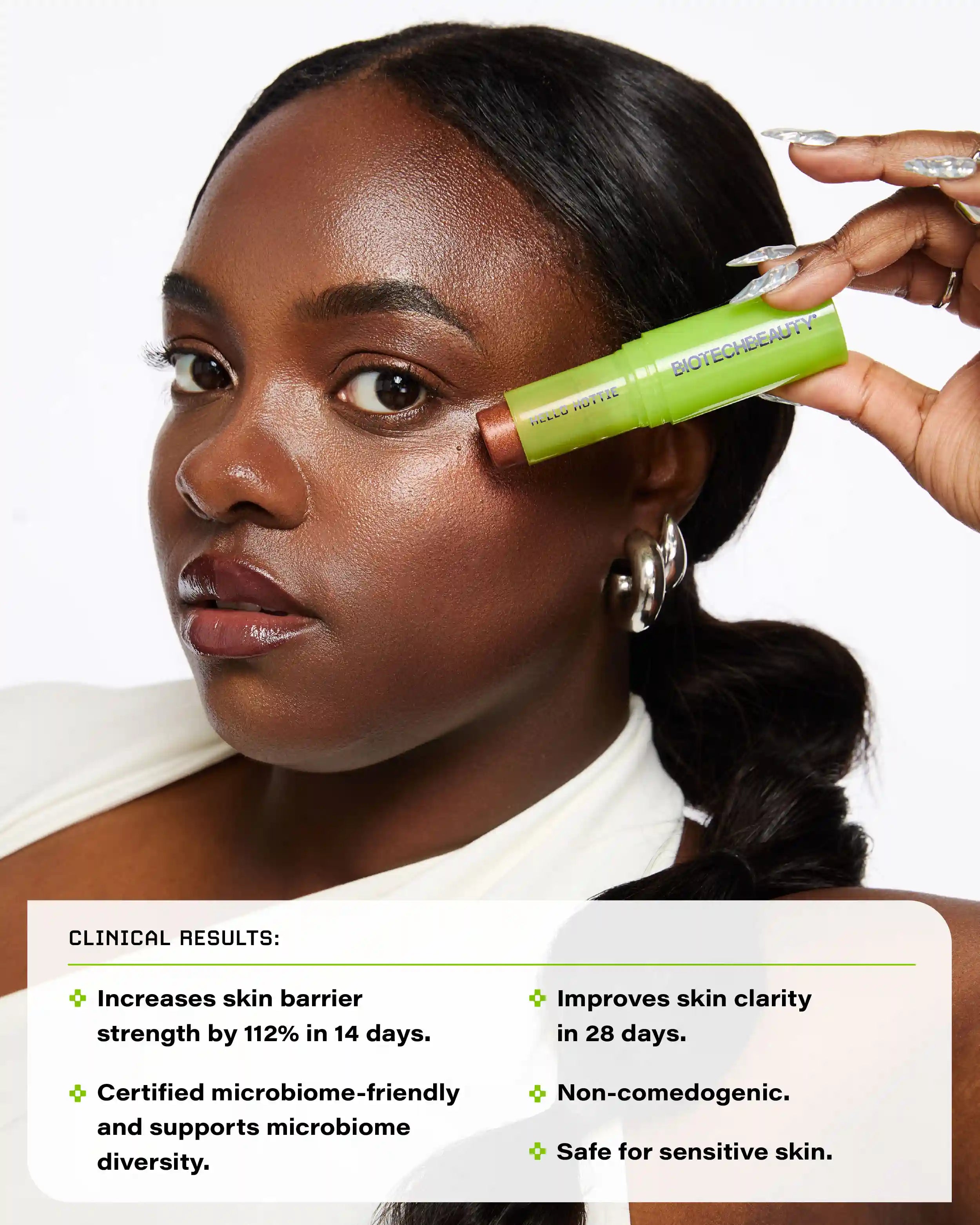Featuring our proprietary BiomeBoost™ complex — a blend of prebiotics, postbiotics, ceramides, vegan polypeptides, and fermentation-derived squalane — it strengthens the skin barrier, supports microbiome balance, and helps maintain healthy, irritation-free skin. Formulated exclusively with ethical, lab-made mica and 83%+ skincare actives, it increases barrier function by 112% and skin clarity by 30% in just 14 days — for a true lit-from-within radiance.