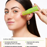 This patent-pending formula is powered by biotech and clinically tested with dermatologists to be microbiome-friendly. Formulated exclusively with ethical, lab-made mica. Made with 83%+ skincare actives, it increases your skin barrier function by 112% and increases skin clarity by 30% in just 14 days — for a true lit-from-within radiance.